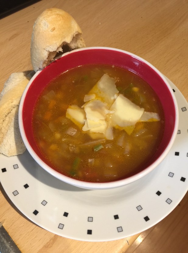 - Optional – Parmesan cheese and crusty bread as desired (cheddar can be used)