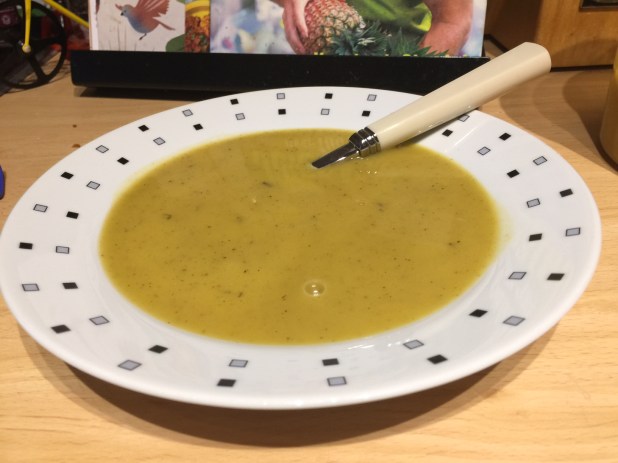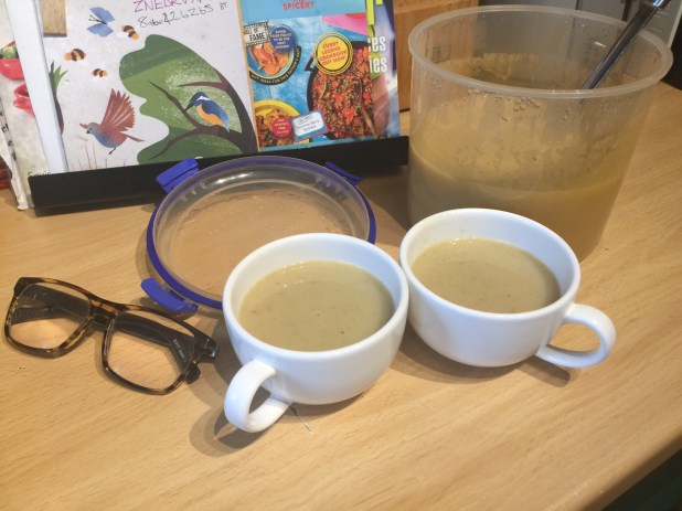This is a triumph of a smooth, creamy and very tasty soup. If I didn’t know better I would say that I have happened onto a medical miracle. My skills as a soupy alchemist are finally coming to the fore as I recover from my brush with man-flu.